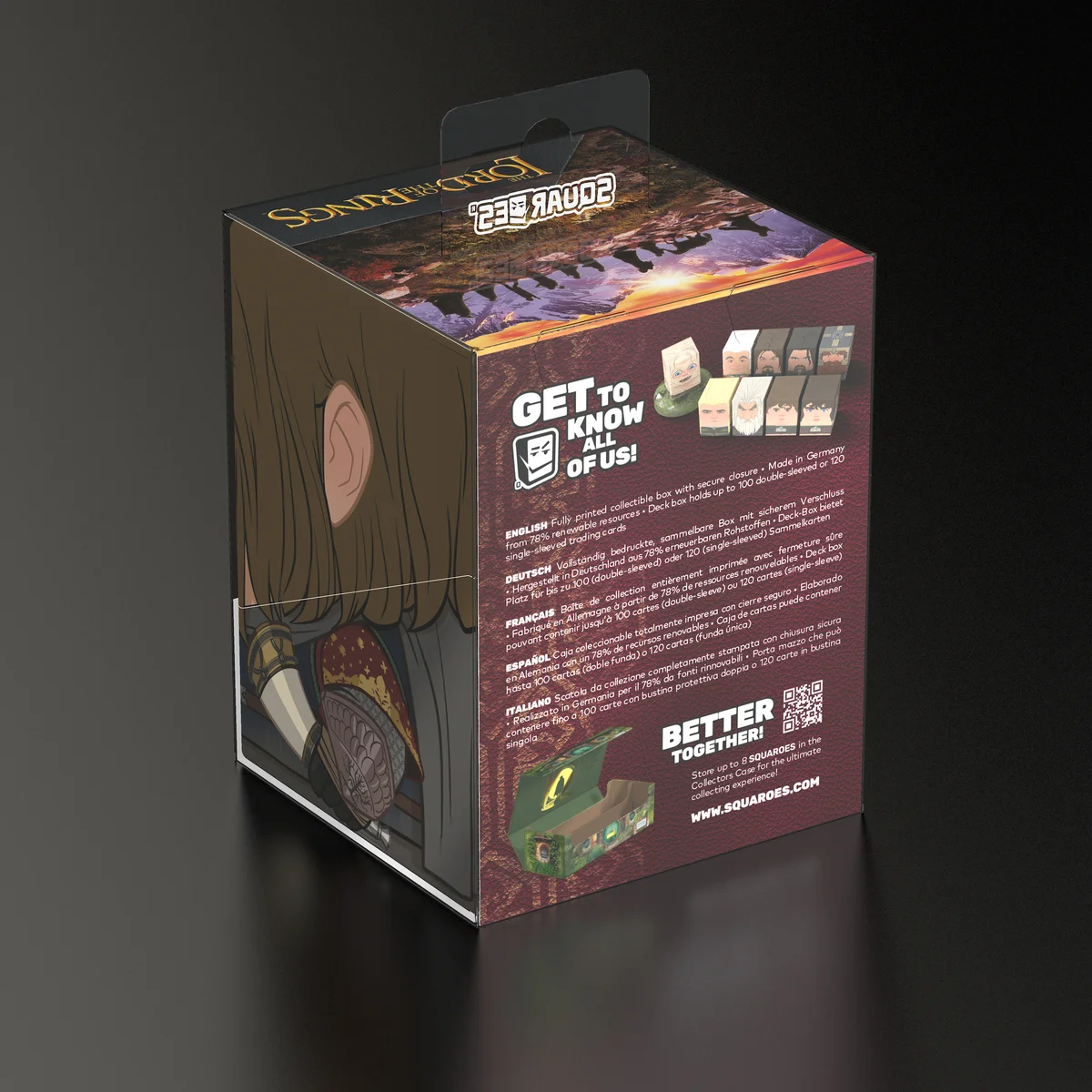 Sammelbare Box zur Aufbewahrung von TCG-Decks, Tabletop-Zubehör und/oder Sammlerstücken. Der Boromir Squaroe aus der The Lord of the Rings-Edition bietet als Deck-Box benutzt Platz für bis zu 100 Spielkarten in doppelter Schutzhülle. Squaroes werden aus 78% erneuerbaren Rohstoffen hergestellt und passen perfekt in das separat erhältliche Collectors Case.