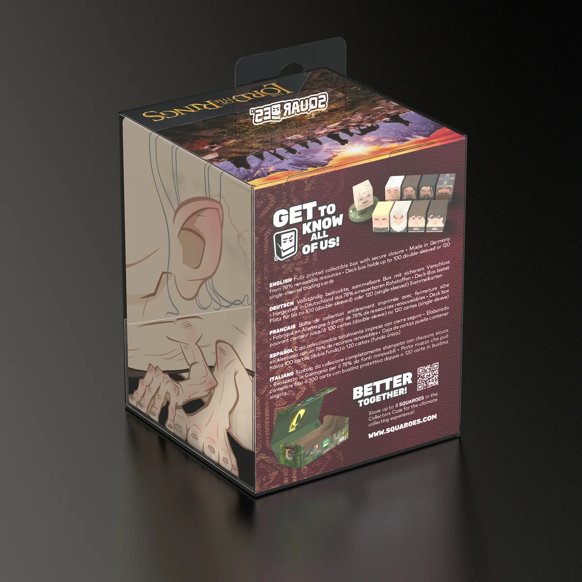 Sammelbare Box zur Aufbewahrung von TCG-Decks, Tabletop-Zubehör und/oder Sammlerstücken. Der Gollum Squaroe aus der The Lord of the Rings-Edition bietet als Deck-Box benutzt Platz für bis zu 100 Spielkarten in doppelter Schutzhülle. Squaroes werden aus 78% erneuerbaren Rohstoffen hergestellt und passen perfekt in das separat erhältliche Collectors Case.