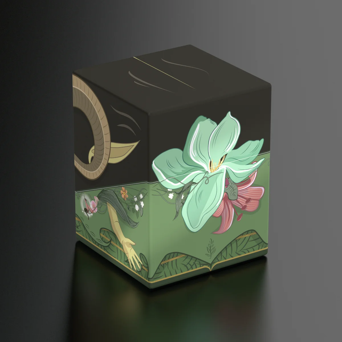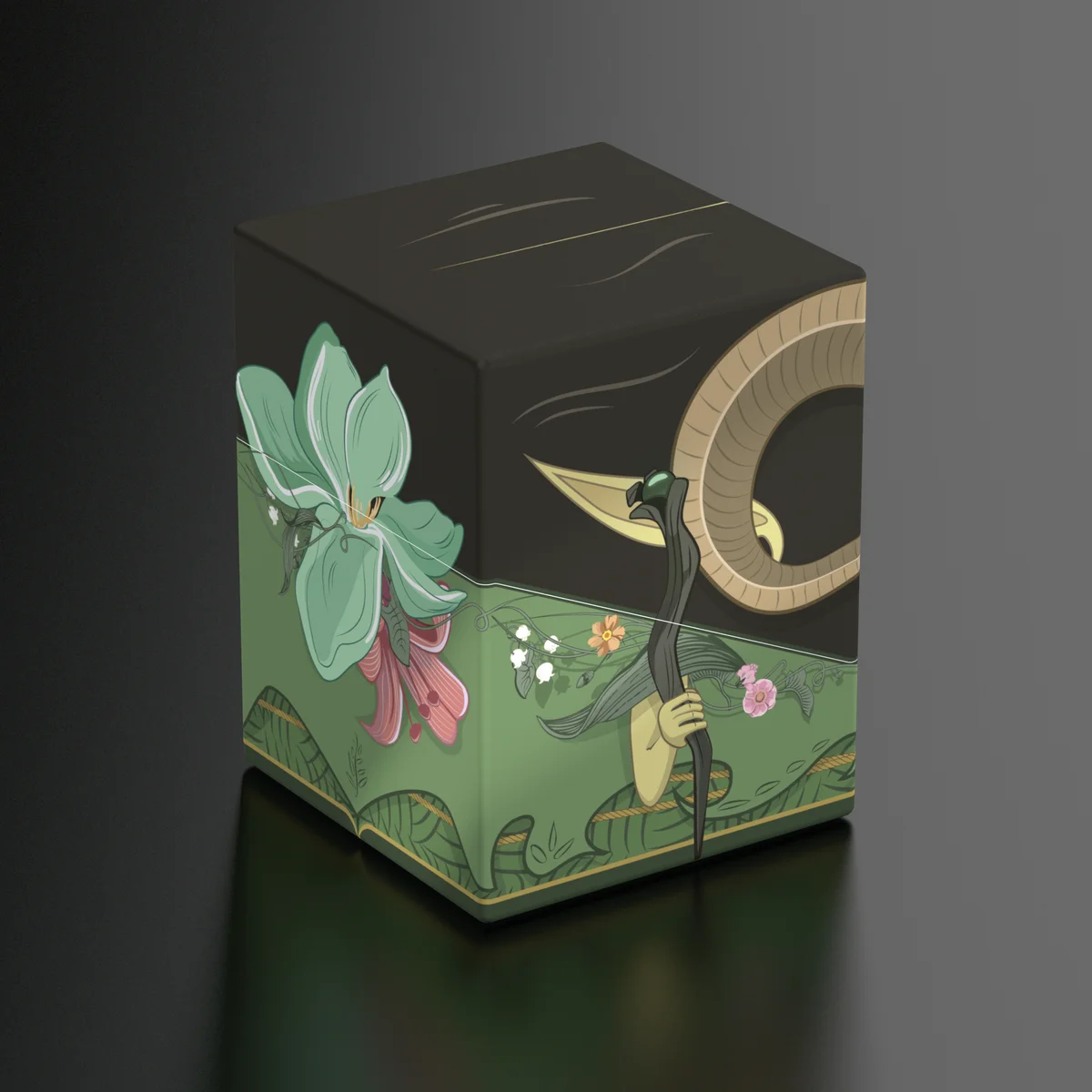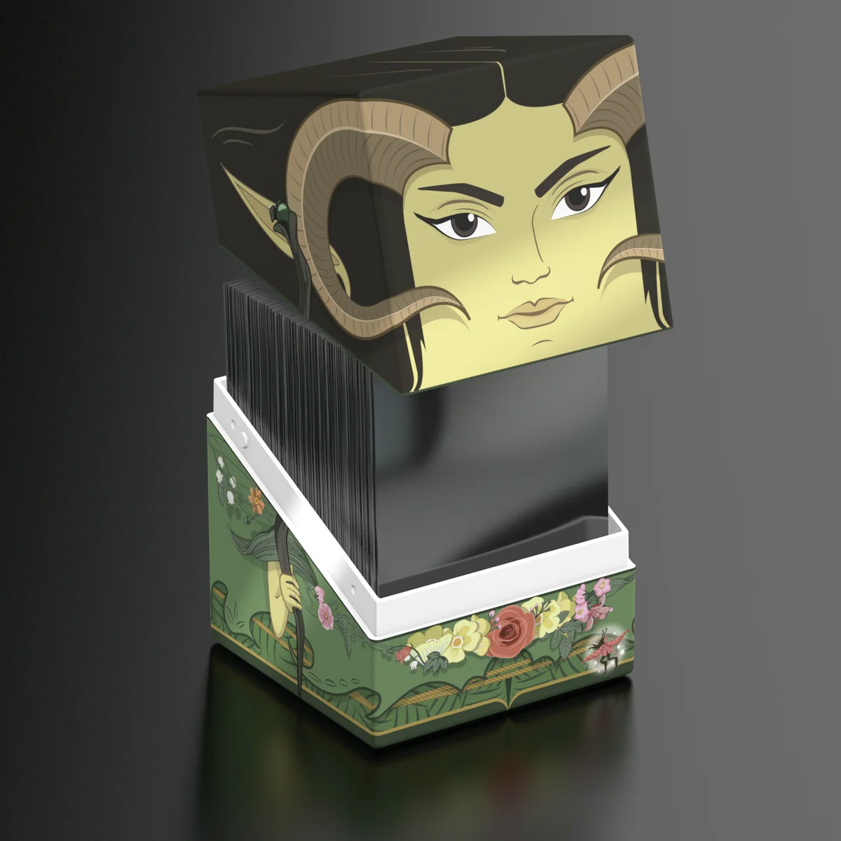 Sammelbare Box zur Aufbewahrung von TCG-Decks, Tabletop-Zubehör und/oder Sammlerstücken. Der Maralen Squaroe aus der Magic: The Gathering-Edition bietet als Deck-Box benutzt Platz für bis zu 100 Spielkarten in doppelter Schutzhülle. Squaroes werden aus 78% erneuerbaren Rohstoffen hergestellt.