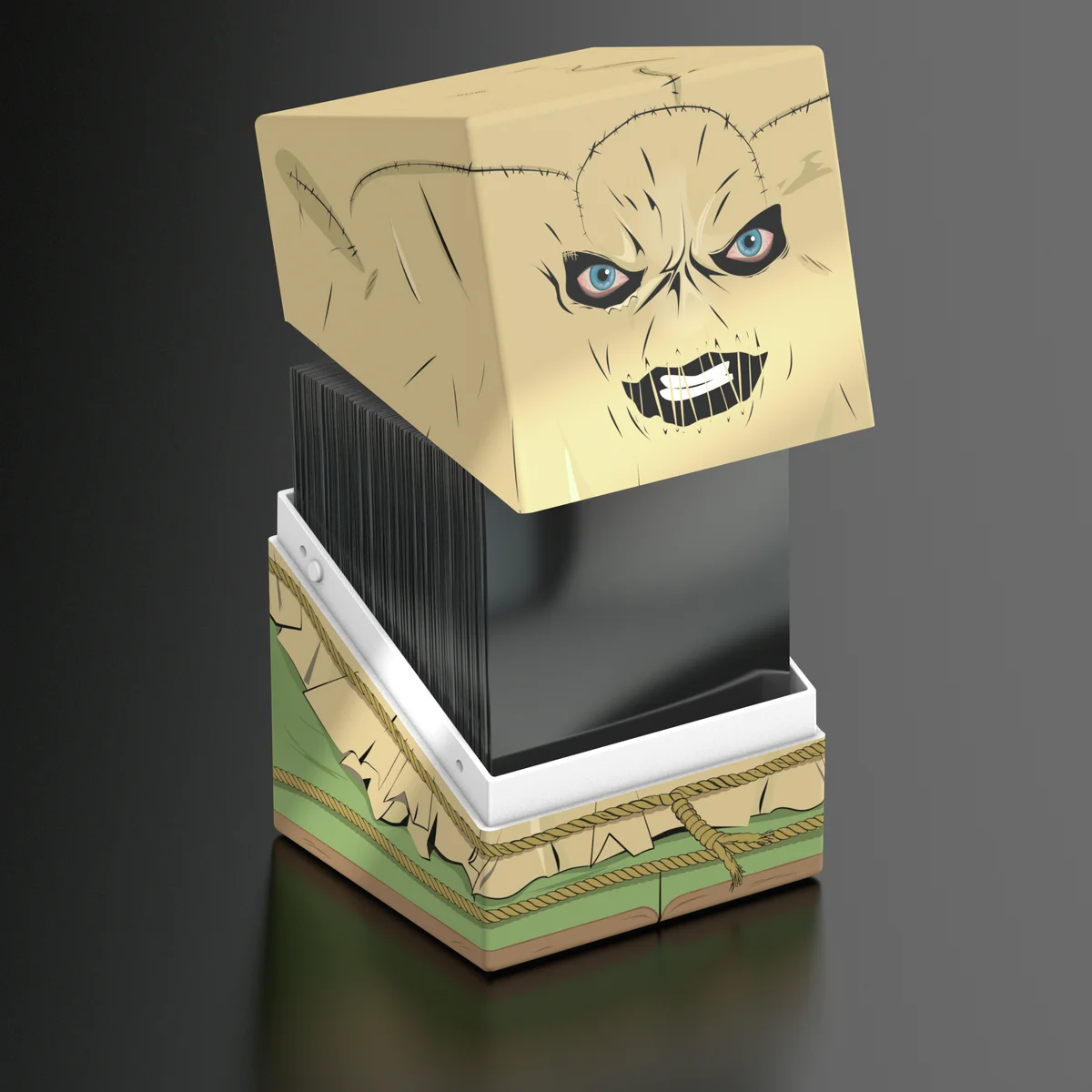 Collectible box for storing TCG decks, tabletop gaming accessories, and/or collectibles. The Scarecrow Squaroe from the Batman: Gotham City edition holds up to 100 cards in double protective sleeves if used as a deck box. Squaroes are made from 78% renewable resources and fit perfectly into the separately available Collectors Case.