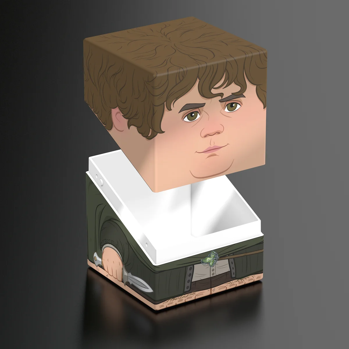 Collectible box for storing TCG decks, tabletop gaming accessories, and/or collectibles. The Sam Squaroe from the The Lord of the Rings edition holds up to 100 cards in double protective sleeves if used as a deck box. Squaroes are made from 78% renewable resources and fit perfectly into the separately available Collectors Case.