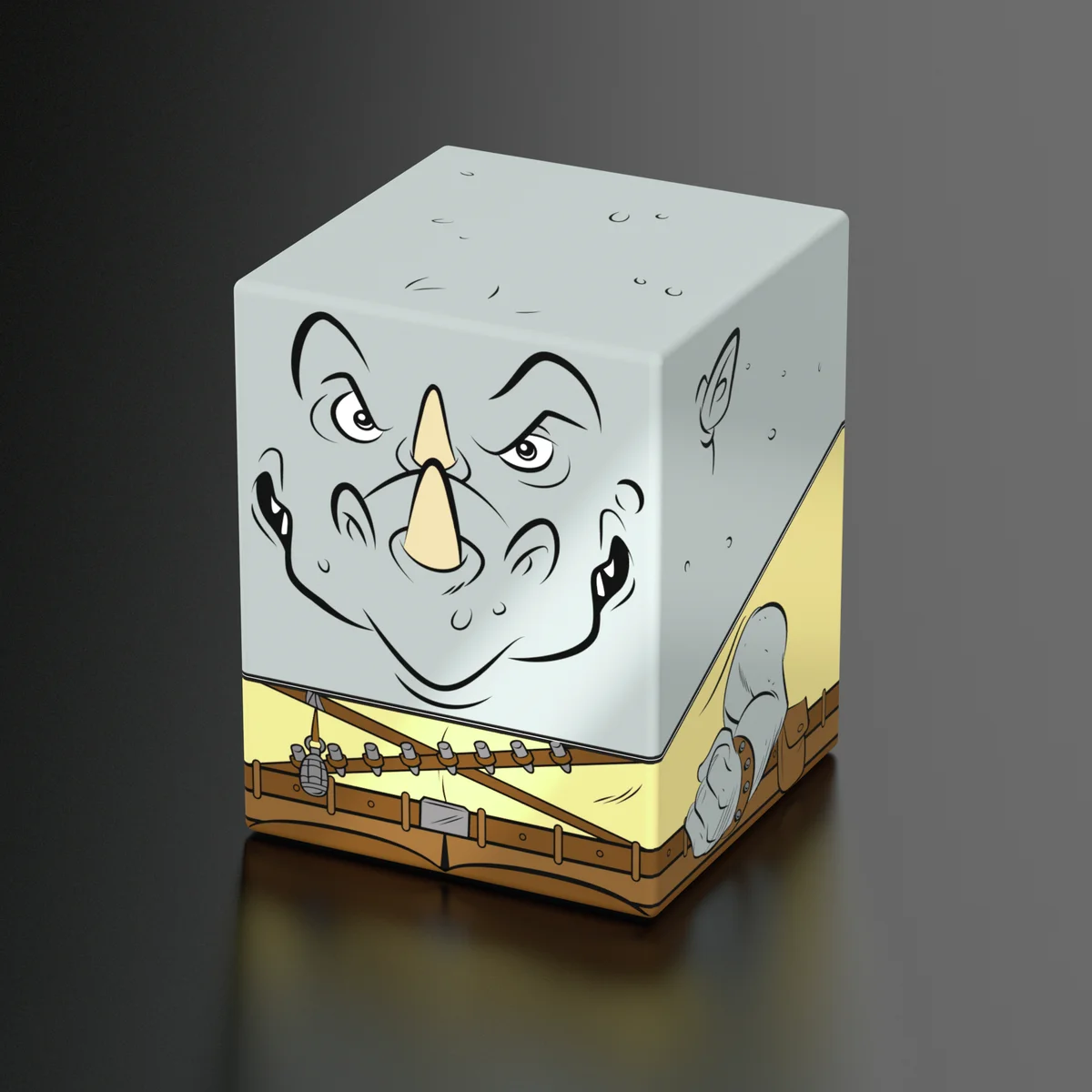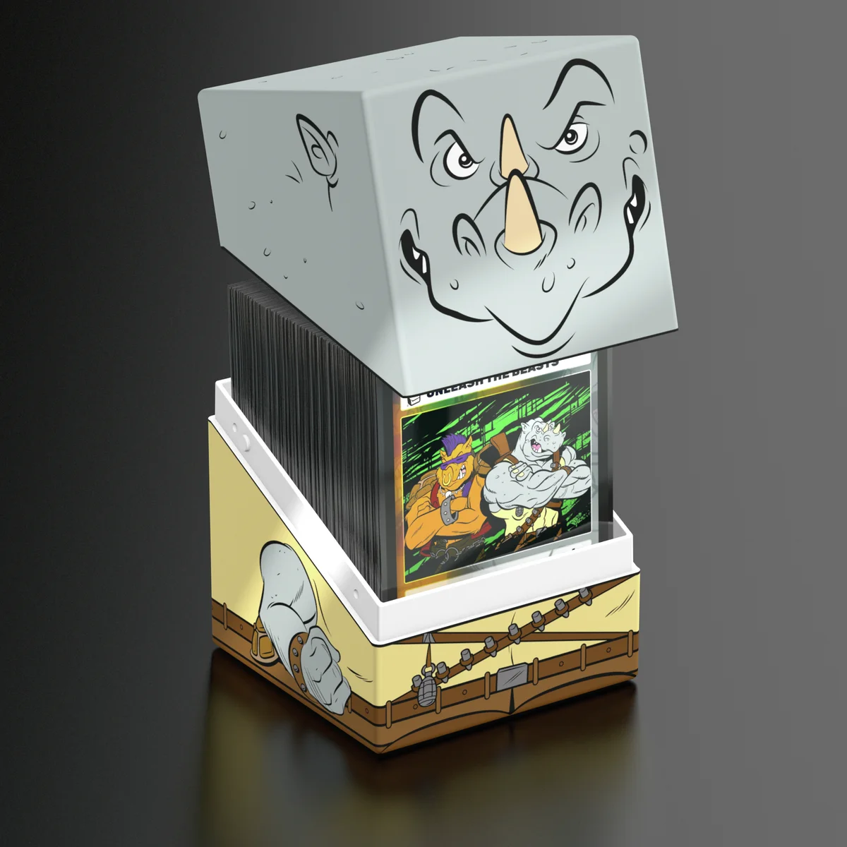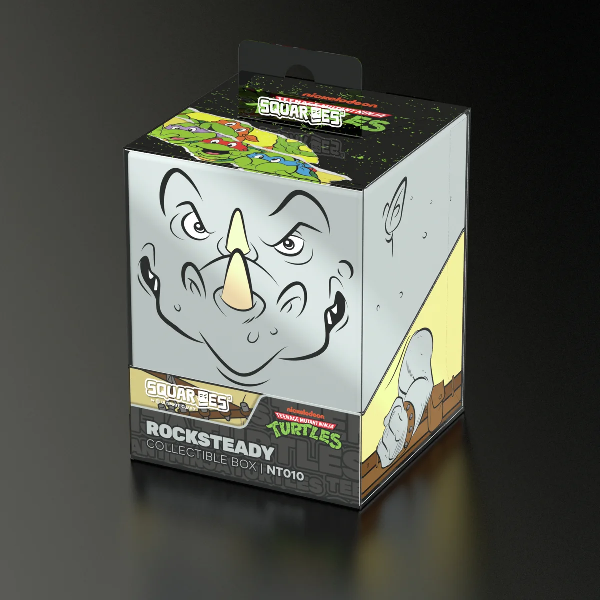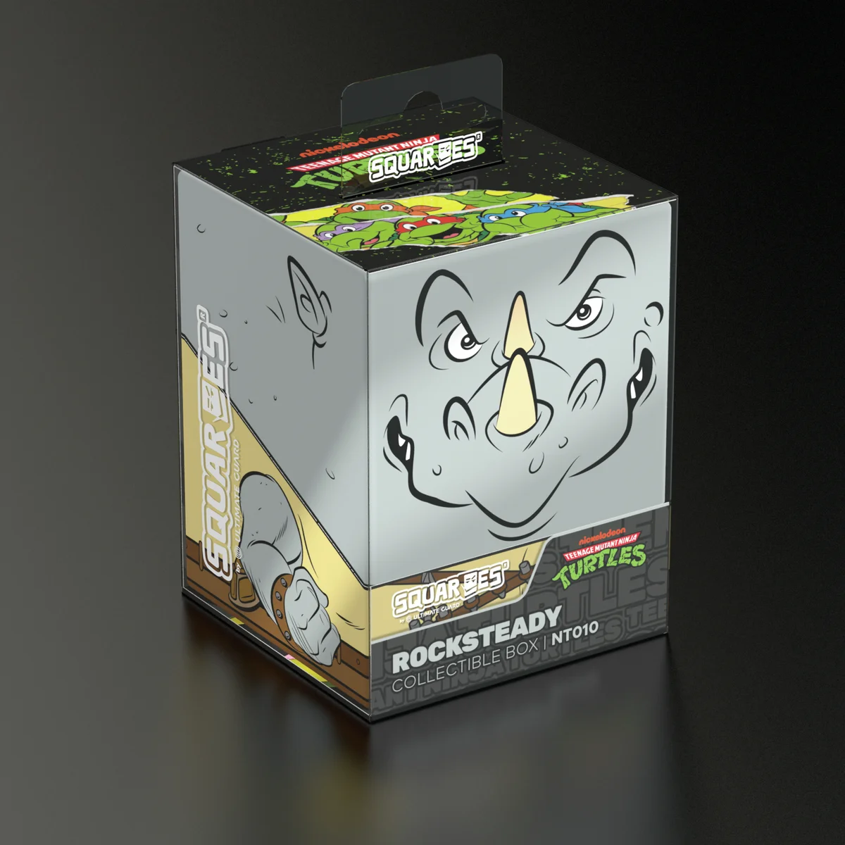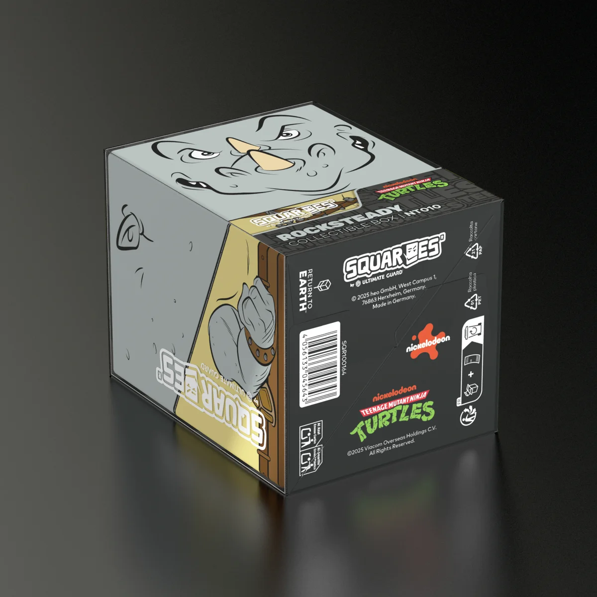 Collectible box for storing TCG decks, tabletop gaming accessories, and/or collectibles. The Rocksteady Squaroe from the Teenage Mutant Ninja Turtles™ edition holds up to 100 cards in double protective sleeves if used as a deck box. Squaroes are made from 78% renewable recources and fit perfectly into the separately available Collectors Case.