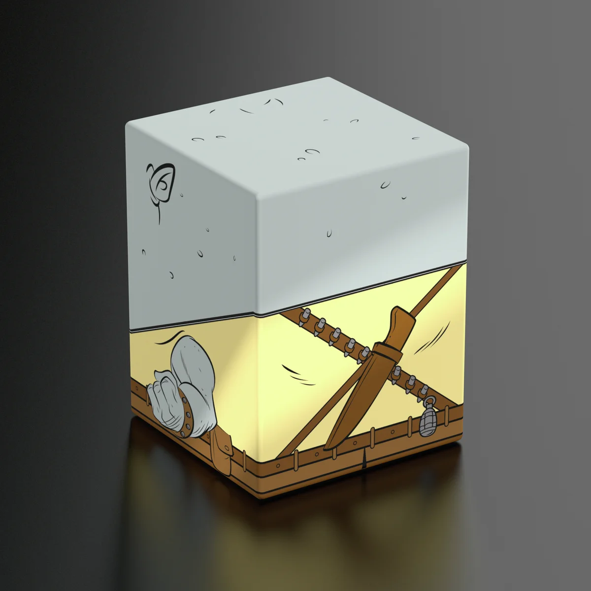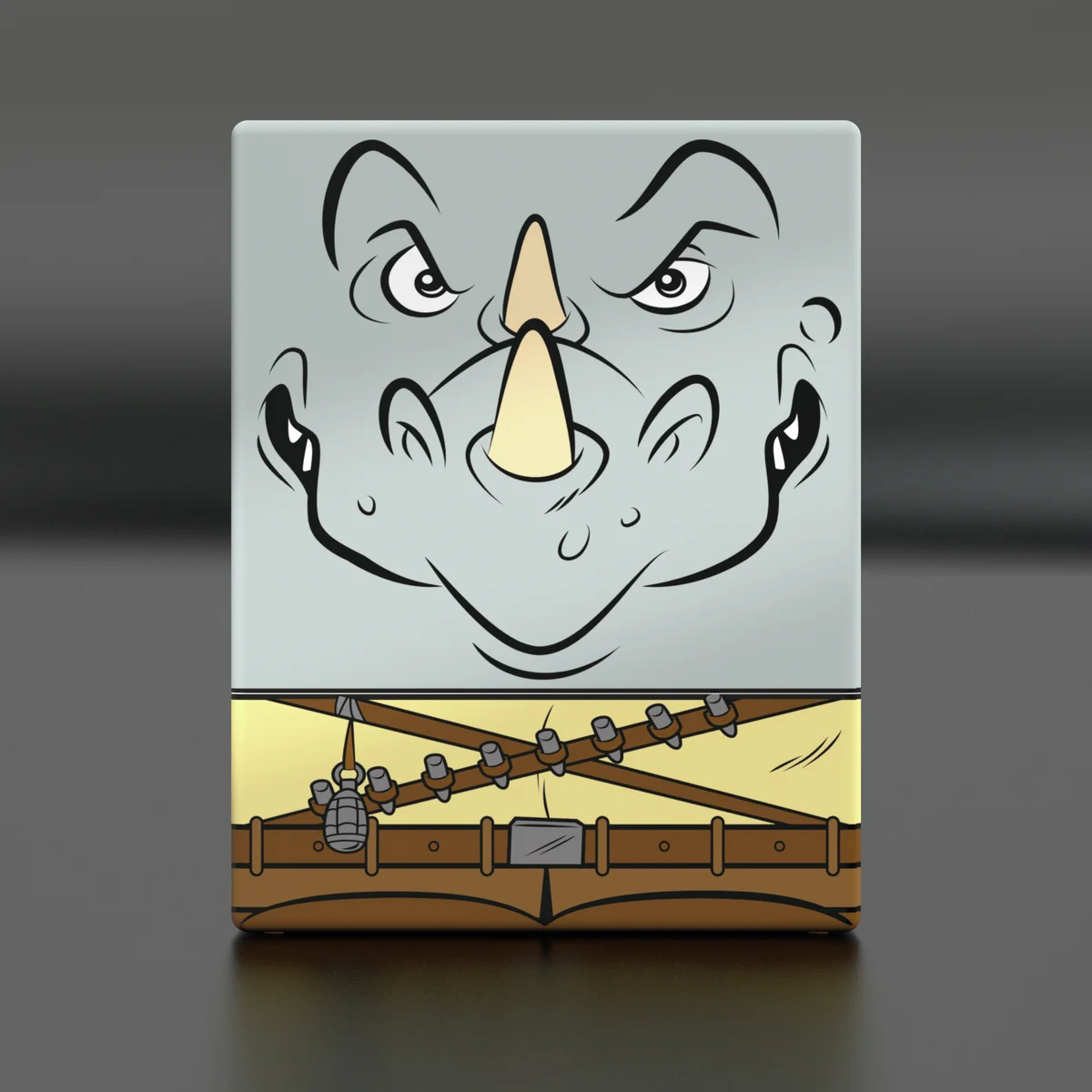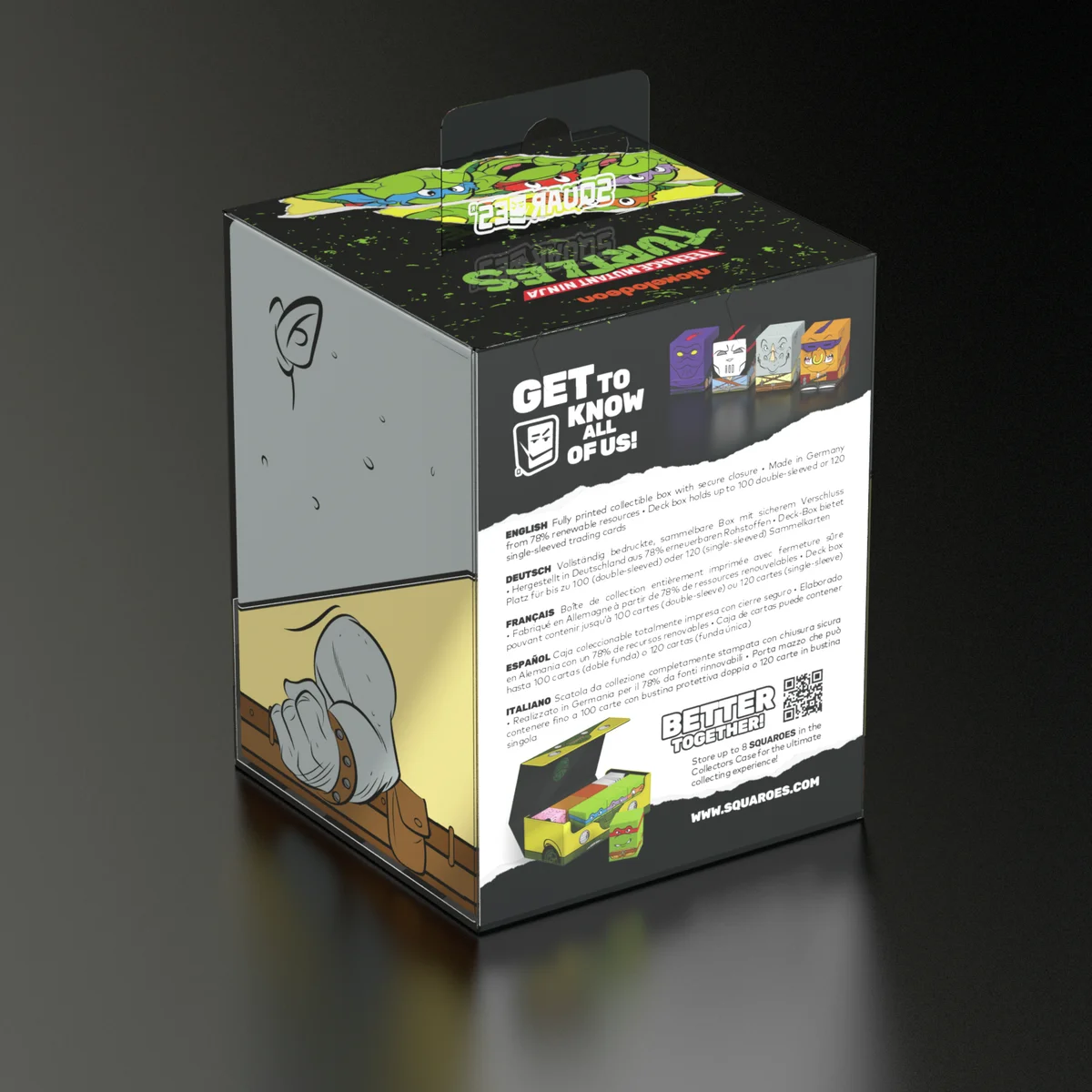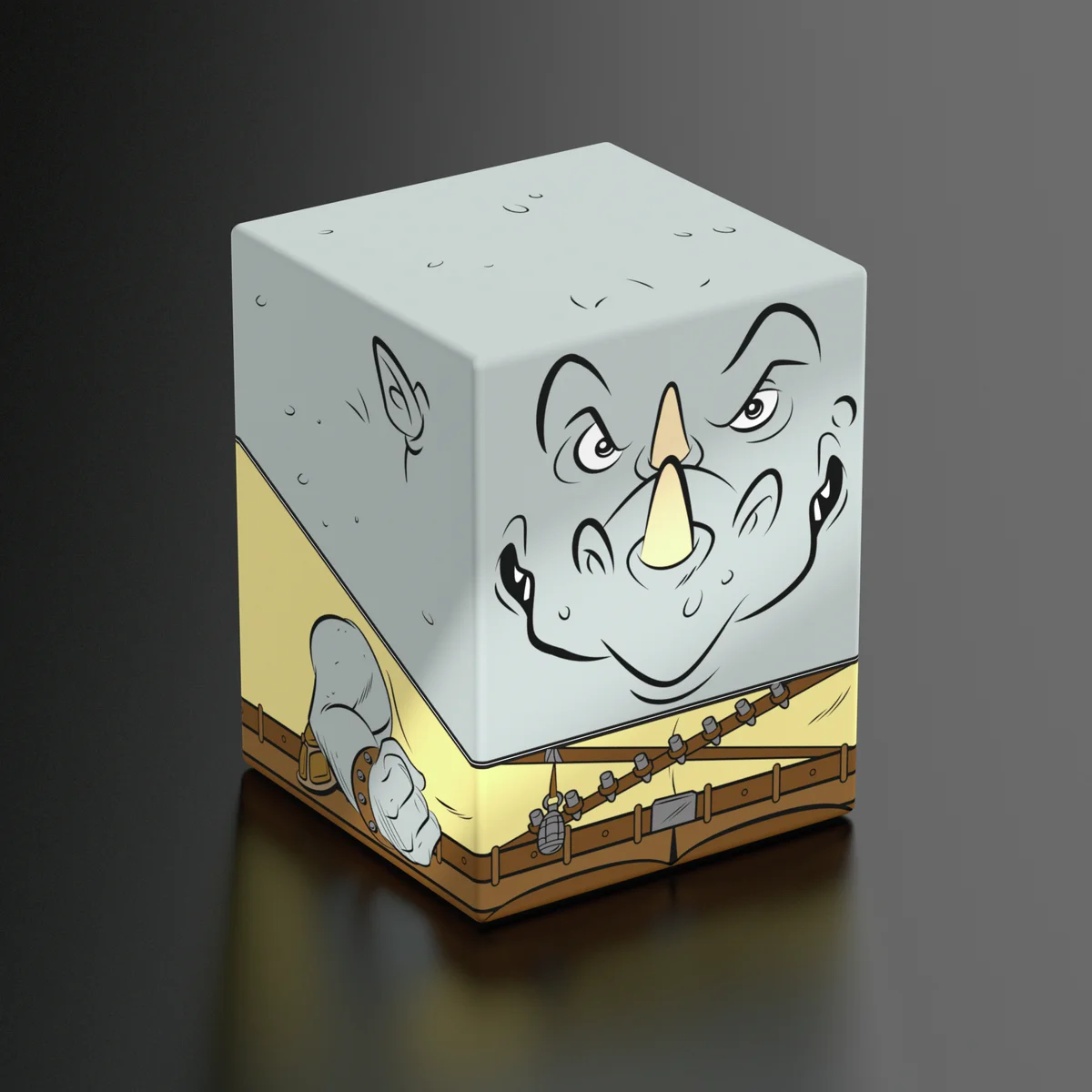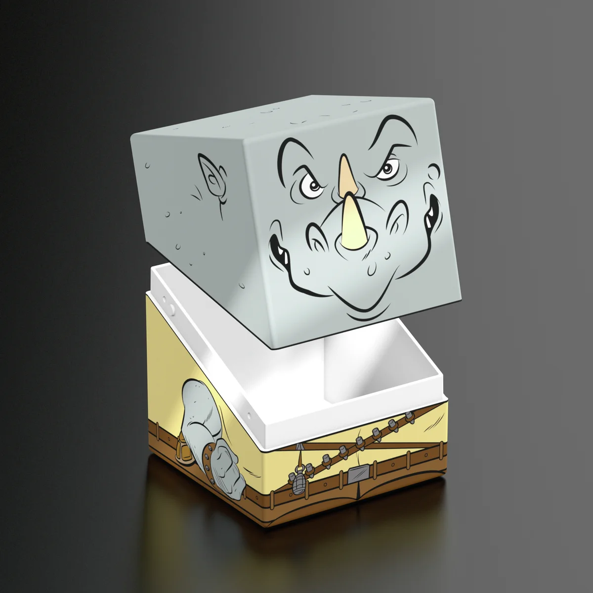 Collectible box for storing TCG decks, tabletop gaming accessories, and/or collectibles. The Rocksteady Squaroe from the Teenage Mutant Ninja Turtles™ edition holds up to 100 cards in double protective sleeves if used as a deck box. Squaroes are made from 78% renewable recources and fit perfectly into the separately available Collectors Case.