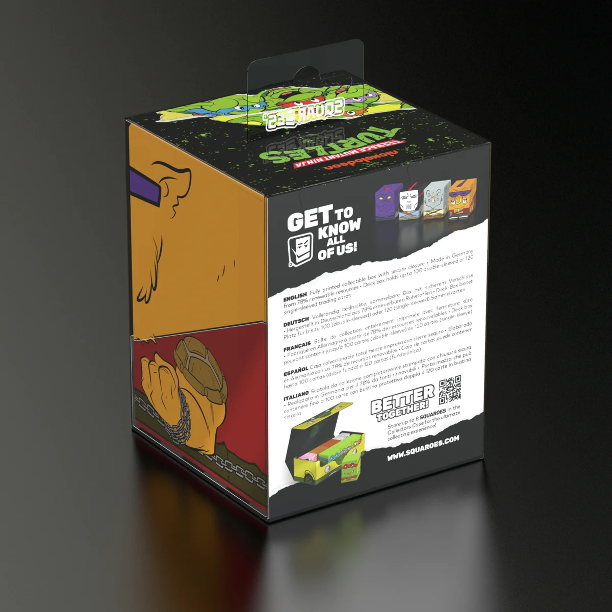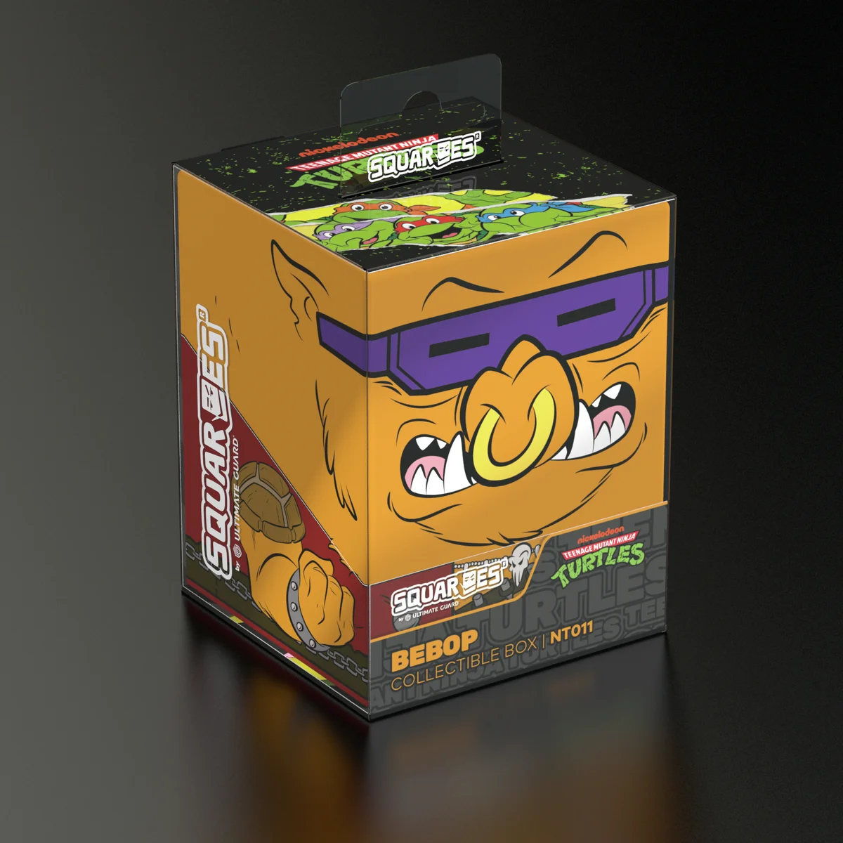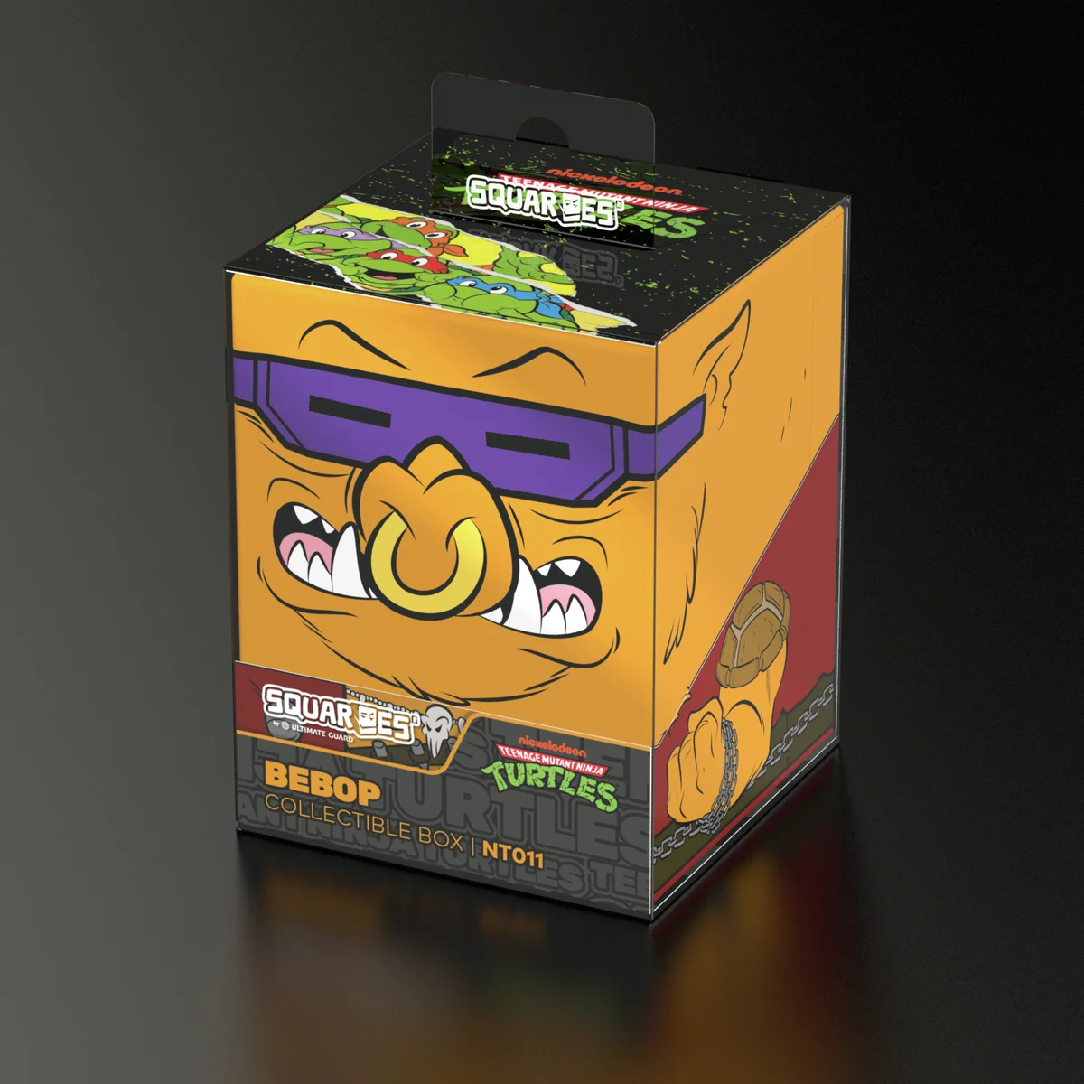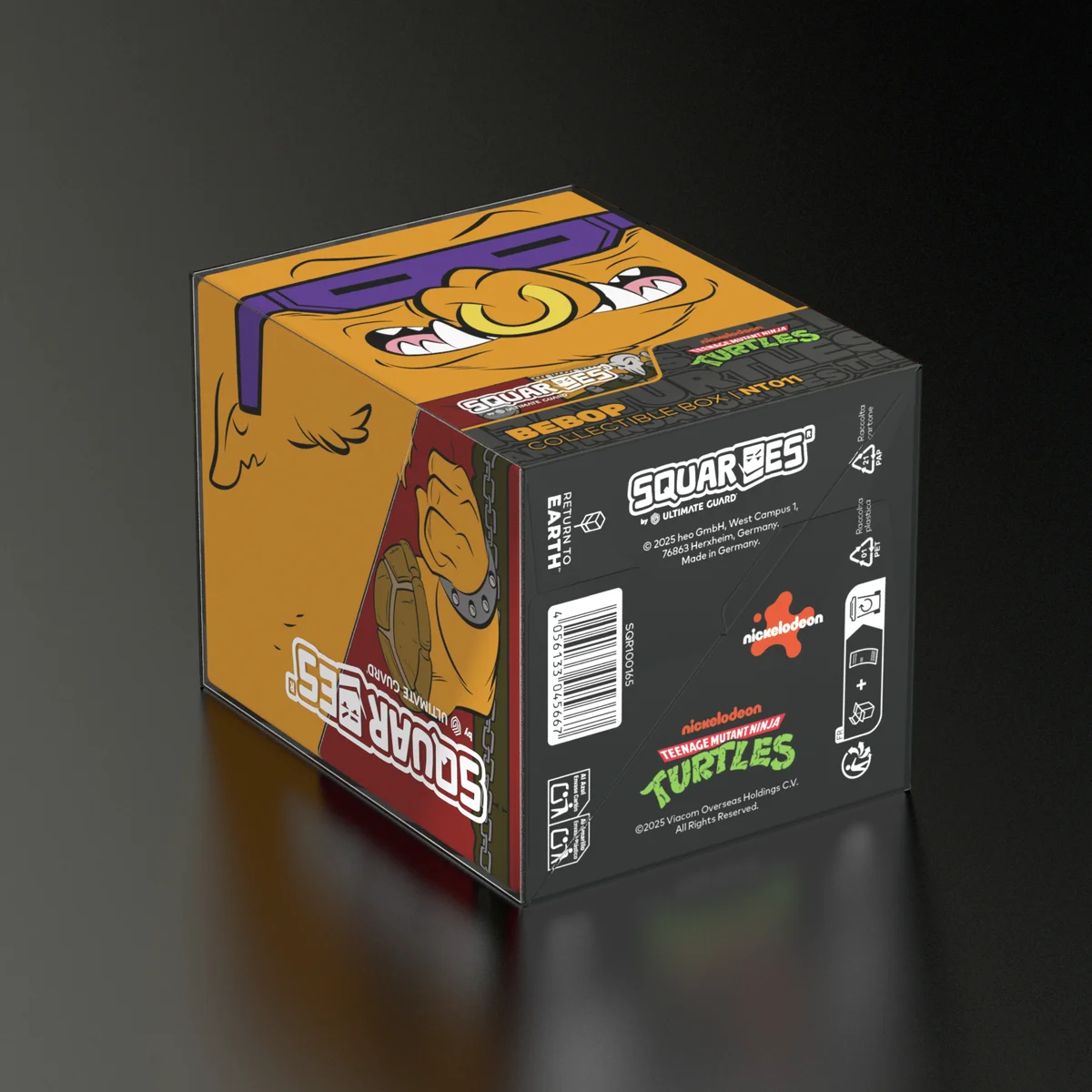 Collectible box for storing TCG decks, tabletop gaming accessories, and/or collectibles. The Bebop Squaroe from the Teenage Mutant Ninja Turtles™ edition holds up to 100 cards in double protective sleeves if used as a deck box. Squaroes are made from 78% renewable recources and fit perfectly into the separately available Collectors Case.